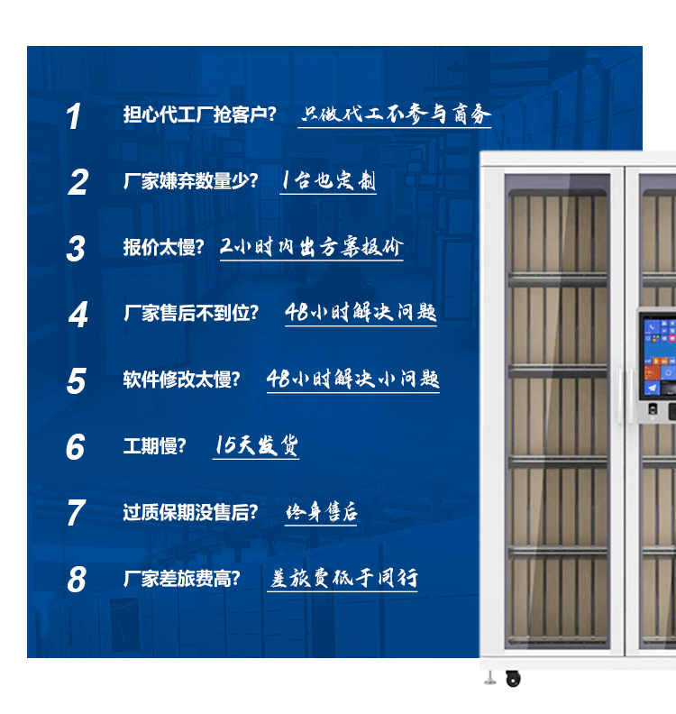 有15年管家式服務(wù)中間商的成熟經(jīng)驗(yàn)。成熟產(chǎn)品有RFID智能柜、稱重柜、光敏柜、智能工具車、公檢法檔案管理柜。支撐軟件定制開發(fā)。